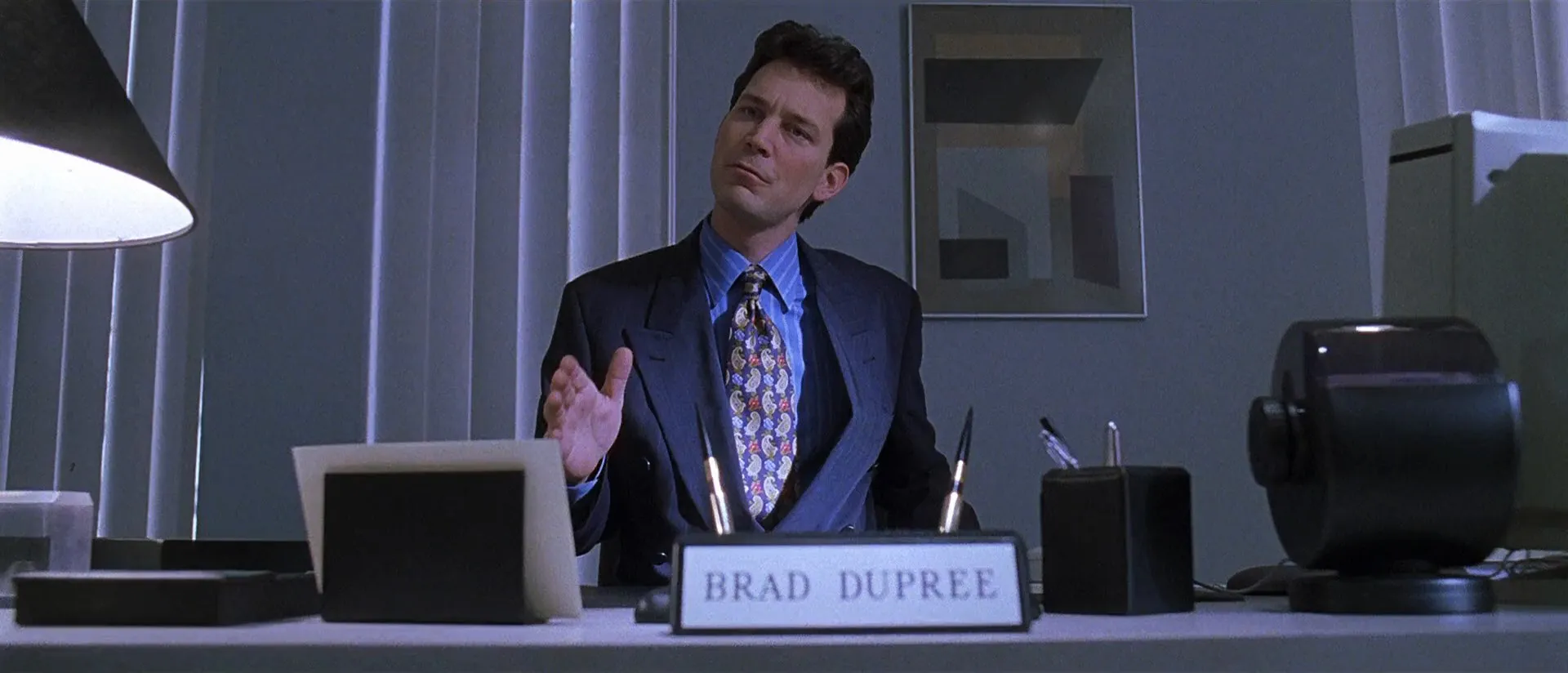 Actors: Kevin Spacey as Lester Burnham, Annette Bening as Carolyn Burnham, Thora Birch as Jane Burnham, Wes Bentley as Ricky Fitts, Mena Suvari as Angela Hayes, Chris Cooper as Colonel Frank Fitts, Allison Janney as Barbara Fitts, Peter Gallagher as Buddy Kane, Scott Bakula as Jim Olmeyer, Sam Robards as Jim Berkley, Barry Del Sherman as Brad Dupree, John Cho as Sale House Man #1, Hal Fort Atkinson as Sale House Man #2, Kent Faulcon as Sale House Man #3, Ara Celi as Sale House Woman #1, Sue Casey as Sale House Woman #2, Brenda Wehle as Sale House Woman #3, Lisa Cloud as Sale House Woman #4, Amber Smith as Christy Kane, Joel McCrary as Catering Boss, Marissa Jaret Winokur as Janine, Dennis Anderson as Mr. Smiley's Manager, Matthew Kimbrough as Firing Range Attendant, Erin Cathryn Strubbe as Young Jane, Alison Faulk as Spartanette #1, Krista Goodsitt as Spartanette #2, Lily Houtkin as Spartanette #3, Carolina Lancaster as Spartanette #4, Mona Leah as Spartanette #5, Chekesha Van Putten as Spartanette #6, Emily Zachary as Spartanette #7, Nancy Anderson as Spartanette #8, Reshma Gajjar as Spartanette #9, Stephanie Rizzo as Spartanette #10, Heather Joy Sher as Playground Girl #1, Chelsea Hertford as Playground Girl #2, Elaine Corral Kendall as Newscaster (uncredited), David C. Fisher as Wedding Guest (uncredited), Tom Miller as Advertising Executive (uncredited), Bruce Cohen as Bartender (uncredited)