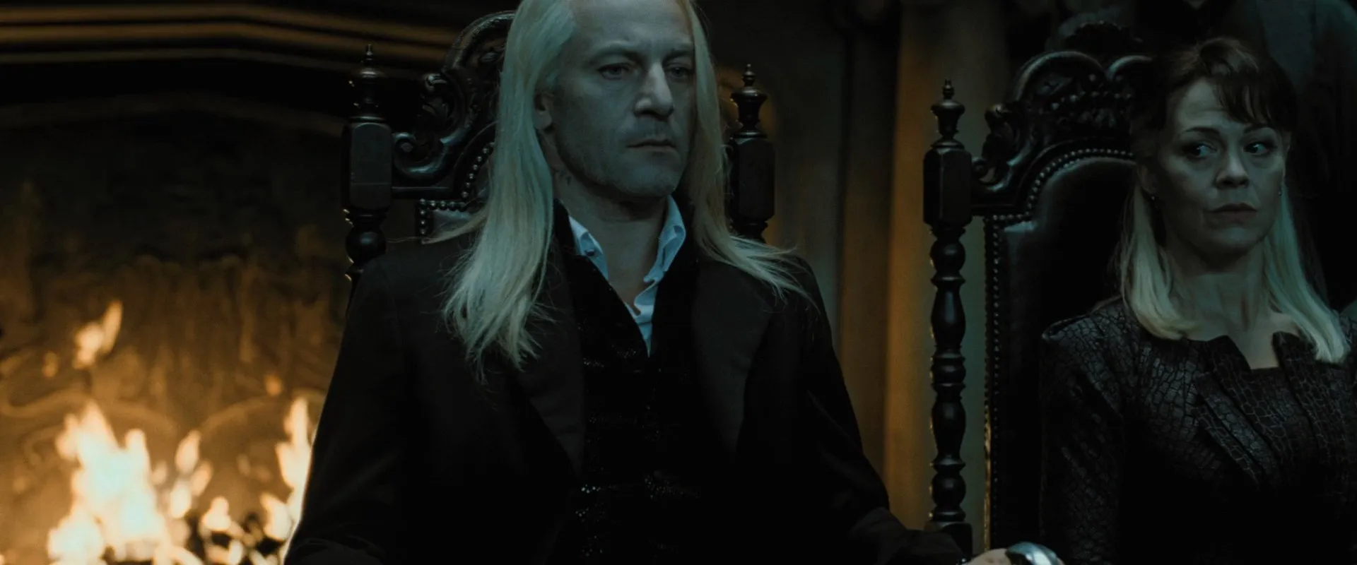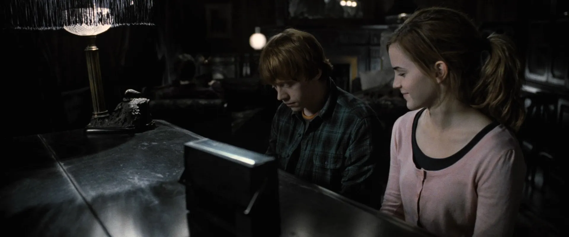 Actors: Daniel Radcliffe as Harry Potter, Rupert Grint as Ron Weasley, Emma Watson as Hermione Granger, Helena Bonham Carter as Bellatrix Lestrange, Robbie Coltrane as Rubeus Hagrid, Ralph Fiennes as Lord Voldemort, Michael Gambon as Albus Dumbledore, Bill Nighy as Rufus Scrimgeour, Brendan Gleeson as Alastor "Mad-Eye" Moody, Richard Griffiths as Vernon Dursley, John Hurt as Ollivander, Rhys Ifans as Xenophilius Lovegood, Jason Isaacs as Lucius Malfoy, Alan Rickman as Severus Snape, Fiona Shaw as Petunia Dursley, Timothy Spall as Peter Pettigrew, Imelda Staunton as Dolores Umbridge, David Thewlis as Remus Lupin, Warwick Davis as Griphook, Tom Felton as Draco Malfoy, Toby Jones as Dobby (voice), Dave Legeno as Fenrir Greyback, Simon McBurney as Kreacher (voice), Helen McCrory as Narcissa Malfoy, Nick Moran as Scabior, Peter Mullan as Corban Yaxley, David O'Hara as Albert Runcorn, Clémence Poésy as Fleur Delacour, Natalia Tena as Nymphadora Tonks, Julie Walters as Molly Weasley, Mark Williams as Arthur Weasley, Bonnie Wright as Ginny Weasley, Harry Melling as Dudley Dursley, Ian Kelly as Mr Granger, Michelle Fairley as Mrs Granger, Carolyn Pickles as Charity Burbage, Graham Duff as Death Eater, Guy Henry as Pius Thicknesse, Arben Bajraktaraj as Antonin Dolohov, Rod Hunt as Thorfinn Rowle, Suzie Toase as Alecto Carrow, Ralph Ineson as Amycus Carrow, Adrian Annis as Death Eater, Emil Hostina as Death Eater, Paul Khanna as Death Eater, Richard Strange as Death Eater, Anthony John Crocker as Death Eater, Peter G. Reed as Death Eater, Granville Saxton as Death Eater, Judith Sharp as Death Eater, Ashley McGuire as Death Eater, Penelope McGhie as Death Eater, Bob Yves Van Hellenberg Hubar as Death Eater, Tony Kirwood as Death Eater, David Ryall as Elphias Doge, James Phelps as Fred Weasley, Oliver Phelps as George Weasley, George Harris as Kingsley Shacklebolt, Andy Linden as Mundungus Fletcher, Domhnall Gleeson as Bill Weasley, Frances de la Tour as Olympe Maxime, Evanna Lynch as Luna Lovegood, Matyelok Gibbs as Auntie Muriel, Eva Alexander as Waitress, Matthew Lewis as Neville Longbottom, Jon Campling as Death Eater, Devon Murray as Seamus Finnigan, William Melling as Nigel Wolpert, Simon Grover as Death Eater, Freddie Stroma as Cormac McLaggen, Isabella Laughland as Leanne, Jessie Cave as Lavender Brown, Anna Shaffer as Romilda Vane, Josh Herdman as Gregory Goyle, Amber Evans as Twin Girl 1, Ruby Evans as Twin Girl 2, Katie Leung as Cho Chang, Georgina Leonidas as Katie Bell, Louis Cordice as Blaise Zabini, Scarlett Hefner as Pansy Parkinson, Afshan Azad as Padma Patil, Steffan Rhodri as Reginald Cattermole, Sophie Thompson as Mafalda Hopkirk, Daniel Tuite as Skinny Ministry Wizard, Daisy Haggard as Ministry Lift (voice), George Potts as Balding Wizard, Rose Keegan as Red Haired Witch, Ned Dennehy as Scared Man, Kate Fleetwood as Mary Cattermole, Daniel Hill as Bushy Haired Muttering Wizard, Rade Šerbedžija as Mykew Gregorovitch, Jamie Campbell Bower as Young Grindelwald, Hazel Douglas as Bathilda Bagshot, Adrian Rawlins as James Potter, Geraldine Somerville as Lily Potter, Miranda Richardson as Rita Skeeter, Michael Byrne as Gellert Grindelwald, Samuel Roukin as Snatcher, Toby Regbo as Young Albus Dumbledore (uncredited), Lewis Young as Snatcher (uncredited)