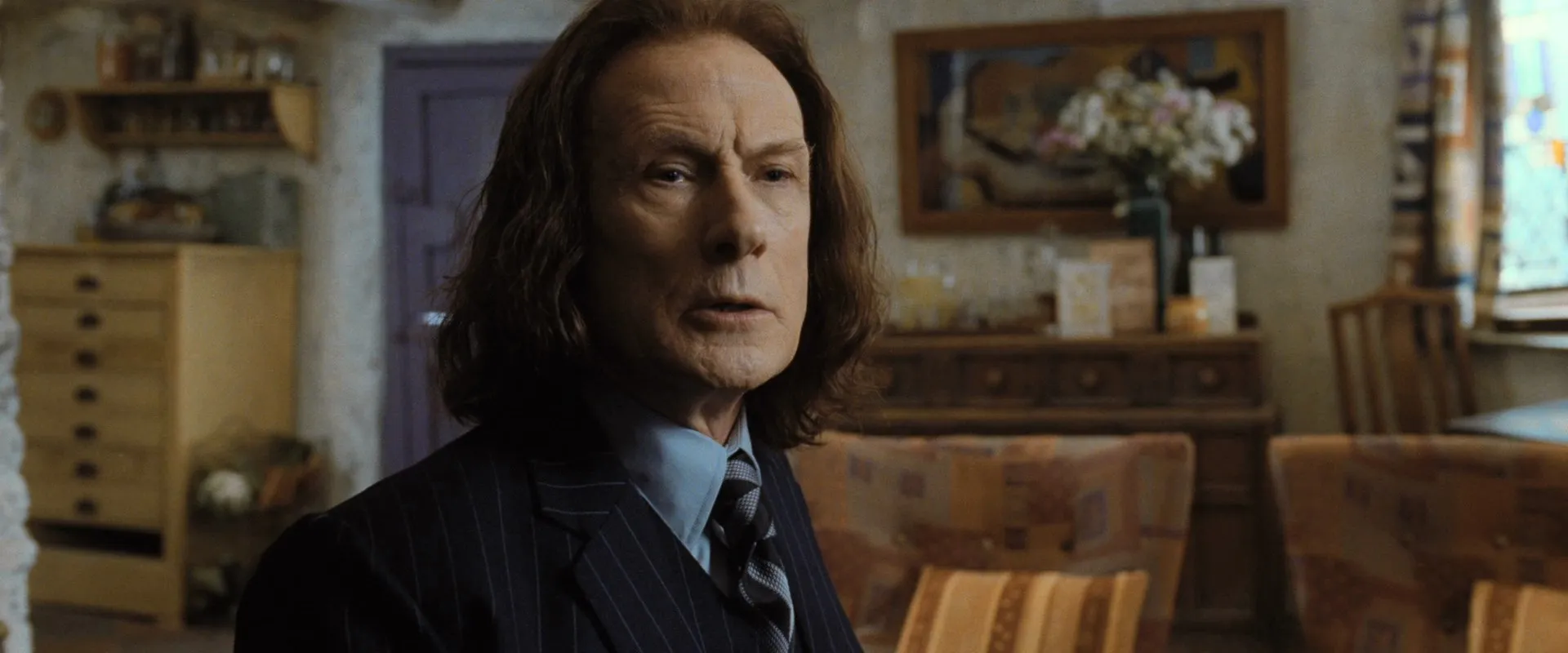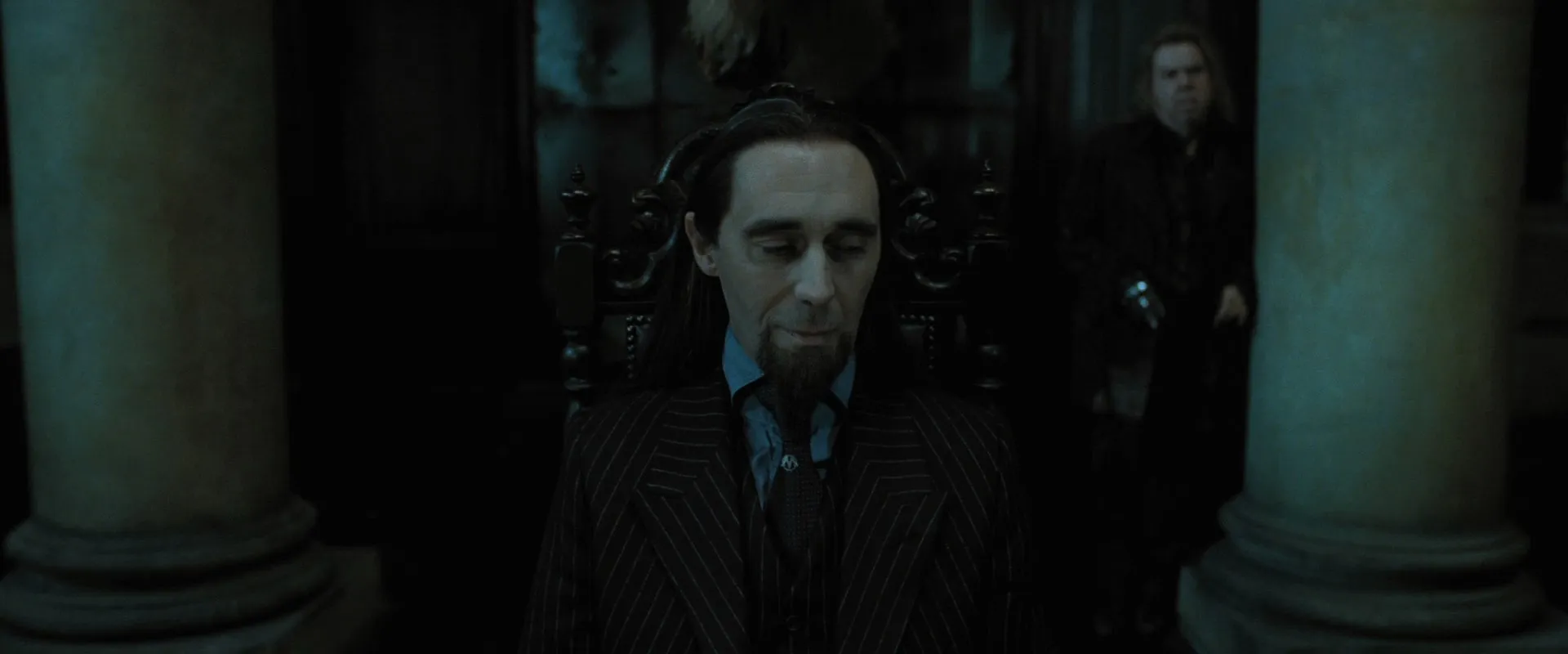Actors: Daniel Radcliffe as Harry Potter, Rupert Grint as Ron Weasley, Emma Watson as Hermione Granger, Helena Bonham Carter as Bellatrix Lestrange, Robbie Coltrane as Rubeus Hagrid, Ralph Fiennes as Lord Voldemort, Michael Gambon as Albus Dumbledore, Bill Nighy as Rufus Scrimgeour, Brendan Gleeson as Alastor "Mad-Eye" Moody, Richard Griffiths as Vernon Dursley, John Hurt as Ollivander, Rhys Ifans as Xenophilius Lovegood, Jason Isaacs as Lucius Malfoy, Alan Rickman as Severus Snape, Fiona Shaw as Petunia Dursley, Timothy Spall as Peter Pettigrew, Imelda Staunton as Dolores Umbridge, David Thewlis as Remus Lupin, Warwick Davis as Griphook, Tom Felton as Draco Malfoy, Toby Jones as Dobby (voice), Dave Legeno as Fenrir Greyback, Simon McBurney as Kreacher (voice), Helen McCrory as Narcissa Malfoy, Nick Moran as Scabior, Peter Mullan as Corban Yaxley, David O'Hara as Albert Runcorn, Clémence Poésy as Fleur Delacour, Natalia Tena as Nymphadora Tonks, Julie Walters as Molly Weasley, Mark Williams as Arthur Weasley, Bonnie Wright as Ginny Weasley, Harry Melling as Dudley Dursley, Ian Kelly as Mr Granger, Michelle Fairley as Mrs Granger, Carolyn Pickles as Charity Burbage, Graham Duff as Death Eater, Guy Henry as Pius Thicknesse, Arben Bajraktaraj as Antonin Dolohov, Rod Hunt as Thorfinn Rowle, Suzie Toase as Alecto Carrow, Ralph Ineson as Amycus Carrow, Adrian Annis as Death Eater, Emil Hostina as Death Eater, Paul Khanna as Death Eater, Richard Strange as Death Eater, Anthony John Crocker as Death Eater, Peter G. Reed as Death Eater, Granville Saxton as Death Eater, Judith Sharp as Death Eater, Ashley McGuire as Death Eater, Penelope McGhie as Death Eater, Bob Yves Van Hellenberg Hubar as Death Eater, Tony Kirwood as Death Eater, David Ryall as Elphias Doge, James Phelps as Fred Weasley, Oliver Phelps as George Weasley, George Harris as Kingsley Shacklebolt, Andy Linden as Mundungus Fletcher, Domhnall Gleeson as Bill Weasley, Frances de la Tour as Olympe Maxime, Evanna Lynch as Luna Lovegood, Matyelok Gibbs as Auntie Muriel, Eva Alexander as Waitress, Matthew Lewis as Neville Longbottom, Jon Campling as Death Eater, Devon Murray as Seamus Finnigan, William Melling as Nigel Wolpert, Simon Grover as Death Eater, Freddie Stroma as Cormac McLaggen, Isabella Laughland as Leanne, Jessie Cave as Lavender Brown, Anna Shaffer as Romilda Vane, Josh Herdman as Gregory Goyle, Amber Evans as Twin Girl 1, Ruby Evans as Twin Girl 2, Katie Leung as Cho Chang, Georgina Leonidas as Katie Bell, Louis Cordice as Blaise Zabini, Scarlett Hefner as Pansy Parkinson, Afshan Azad as Padma Patil, Steffan Rhodri as Reginald Cattermole, Sophie Thompson as Mafalda Hopkirk, Daniel Tuite as Skinny Ministry Wizard, Daisy Haggard as Ministry Lift (voice), George Potts as Balding Wizard, Rose Keegan as Red Haired Witch, Ned Dennehy as Scared Man, Kate Fleetwood as Mary Cattermole, Daniel Hill as Bushy Haired Muttering Wizard, Rade Šerbedžija as Mykew Gregorovitch, Jamie Campbell Bower as Young Grindelwald, Hazel Douglas as Bathilda Bagshot, Adrian Rawlins as James Potter, Geraldine Somerville as Lily Potter, Miranda Richardson as Rita Skeeter, Michael Byrne as Gellert Grindelwald, Samuel Roukin as Snatcher, Toby Regbo as Young Albus Dumbledore (uncredited), Lewis Young as Snatcher (uncredited)