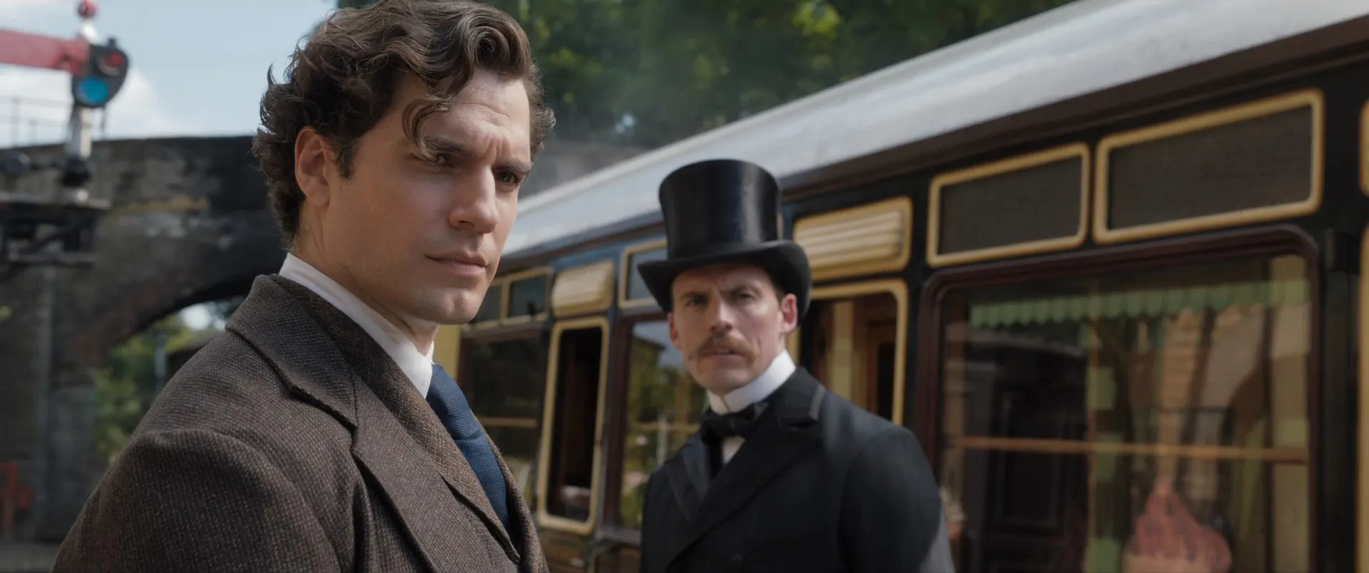 Actors: Millie Bobby Brown as Enola Holmes, Henry Cavill as Sherlock Holmes, Sam Claflin as Mycroft Holmes, Helena Bonham Carter as Eudoria Holmes, Louis Partridge as Lord Tewkesbury, Adeel Akhtar as Lestrade, Fiona Shaw as Miss Harrison, Frances de la Tour as The Dowager, Burn Gorman as Linthorn, Susan Wokoma as Edith, Claire Rushbrook as Mrs. Lane, David Bamber as Sir Whimbrel, Hattie Morahan as Lady Tewkesbury, Gaby French as Seamstress, Paul Copley as Station Master, Ellie Haddington as Miss Gregory, Alex Kelly as Miss Gregory II, James Duke as Footman, Connor Catchpole as Gardener, Sarah Flind as Tea Shop Assistant, Dempsey Bovell as Fleet Street Hawker, Neil Bell as Constable, Sofia Stavrinou as Young Enola, Sophie Dixon as Toddler Enola, David Kirkbride as Agitator, Delroy Atkinson as Porter, Mary Roscoe as Grace Whitting, Anthony Aje as Newspaper Boy (House of Lords), Anthony Rickman as Newspaper Boy (Fleet Street), Philip Scott-Wallace as Newspaper Editor, Tuyen Do as Boarding School Teacher, Esther Coles as Miss Fox, Owen Atlas as Young Sherlock Holmes (uncredited), Gianni Calchetti as Roy (uncredited), Paul Parker as Police Inspector (uncredited), Heather Pearse as Hawker (uncredited), Jay Simpson as Conductor (uncredited)