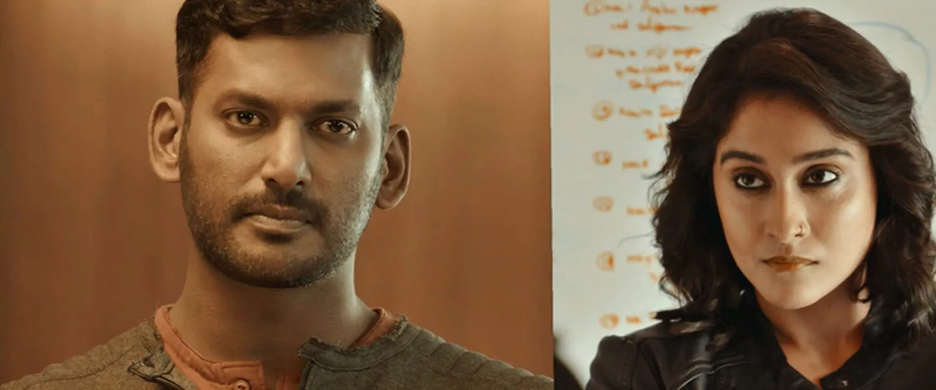 Actors: Vishal Krishna as Chandru, Shraddha Srinath as Gayathri, Regina Cassandra as Leela, Nassar as Chandru's father, Srushti Dange as Rithu Bhatia, Robo Shankar as Kumar, Manobala as Gayathri's uncle, K R Vijaya as Chandru's grandmother, Ravikanth as Dial For Help board member, Baby Krithika as young Leela, Arul Dass as Leela's father, Neelima Rani as Leela's mother, Vijay Babu as Police Commissioner, Amit Bhargav as Ganesh